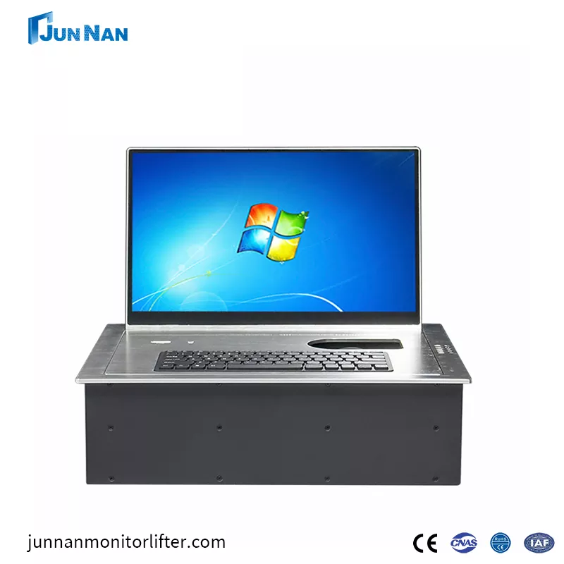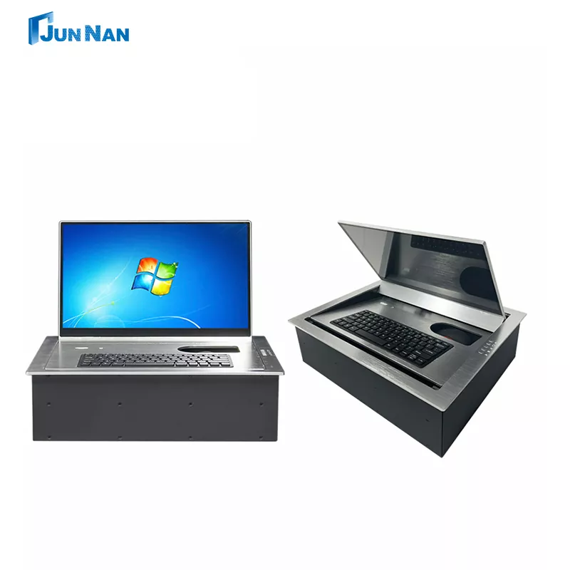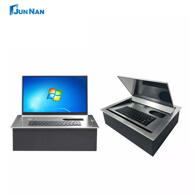 Guangzhou Junnan opifex professionalis LCD screen flipper in Sinis est. Conference Paperless Intelligent Elevatio LCD Screen Flipper Computer Desk Applicatio maxime adhibita est in alta gradu mensae colloquii exsecutivae, LCD screen flipper aedificavit-in summo munere tactus munus aedificavit, Flip Flop ab AC motore moderatur ut flip operationem stabilem curet. Firmum et certum est ut monitor levis in processu flipping et non excutiat vel malfunction; Prudentis imperium; variis modis coerceri potest, ut remota potestate, keypad et cetera. Cito percipere potest transitus inter diversos angulos et status monitoris ad usus necessarios variis missionibus adhibitis. Parari potest cum tortor ligula, clave flip, ante et retro tionibus, cum functione anti-ternum, salus et anxietas libero, abscondita infixa institutionis pulcherrima est.
