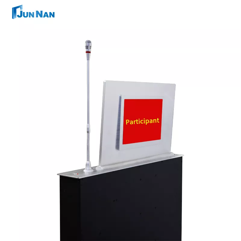 Guangzhou Junnan est professionalis mensae levationis veli fabricatoris ChinaConference et Sinarum Conferentiarum mensa levatio velum elit. Conferentia mensae levationis velum maxime adhibetur in mensa conferentiarum seniorum exsecutiva, constructa-in alta functione tactus functionis, figurans tortor ligula, configurationis Back Screen,one clavem vitae, ante et retro tionibus, instructum ad munus anti-ternum, tutum et solliciti. liber, absconditus, infixa institutionis pulcherrima est.